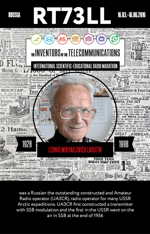 радиомарафоне «ИЗОБРЕТАТЕЛИ ЭЛЕКТРОСВЯЗИ» названий перечисленных организаций..... ©Игорь Григорьев RV3DA